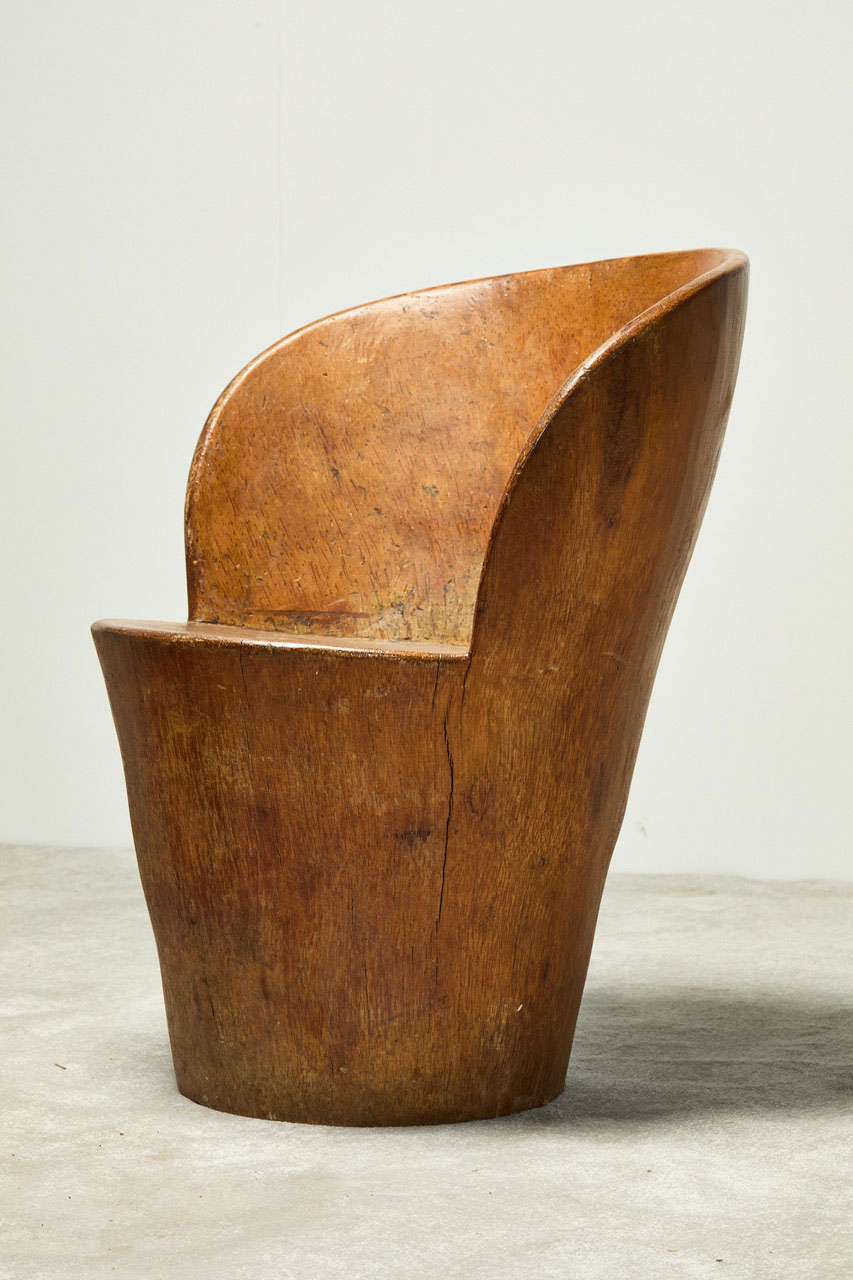 But his research went further, as from the very beginning, he respected ancestral traditions that have always taken into account the protection of nature: the Amazon Rainforest. With his distinctive ecological perspective, he demonstrates how, to avoid wasting wood, he works directly from reclaimed, unused trunks! The remaining wood stumps are used to make other furniture, and even architectural elements. It’s a very timely approach! From furniture, he turned to architecture towards the end of his life, where wood, in construction, allowed for the creation of truly new spaces.