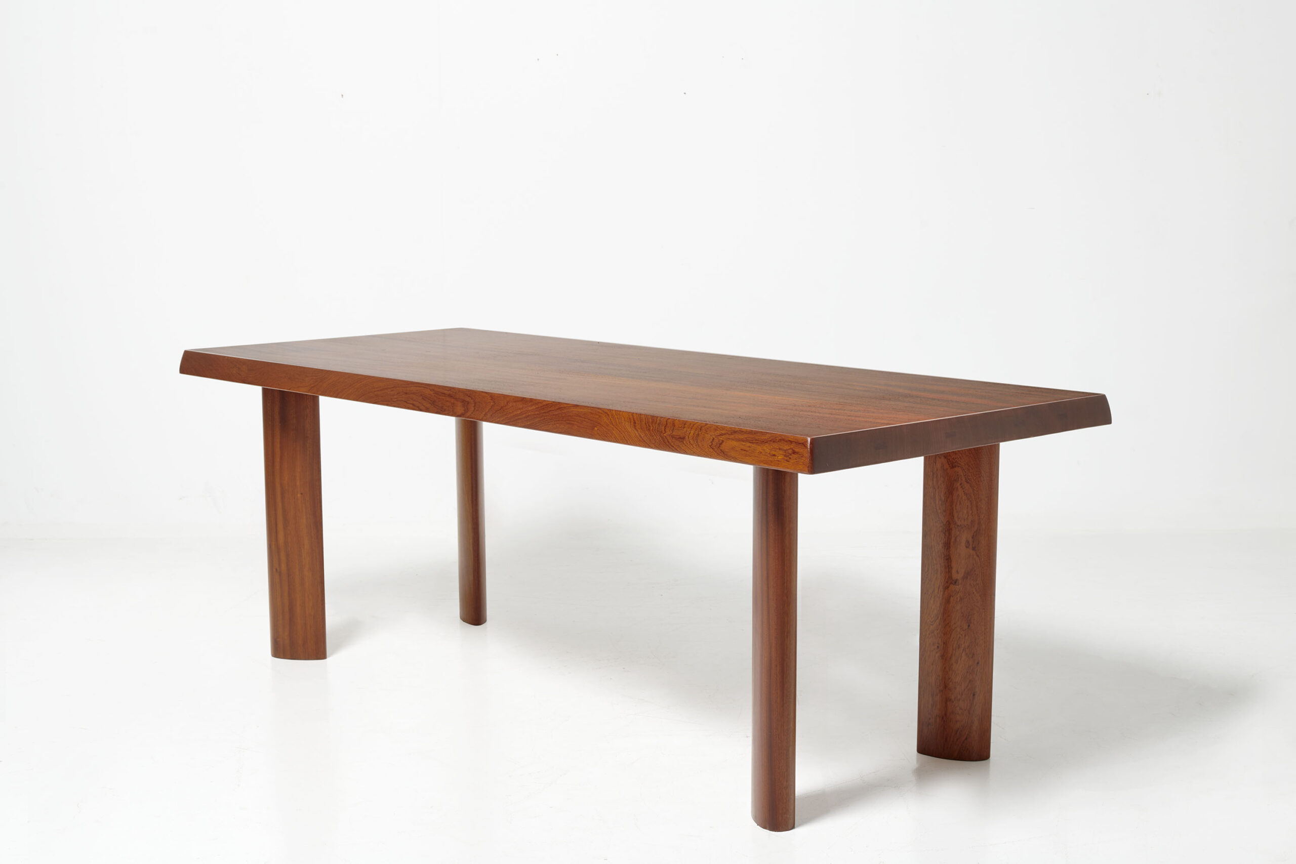 Rectangular in shape, with dark mahogany top, standing on four ovoid feet.