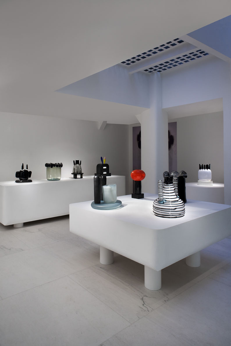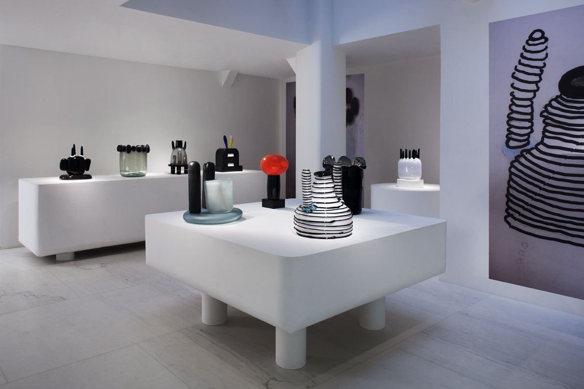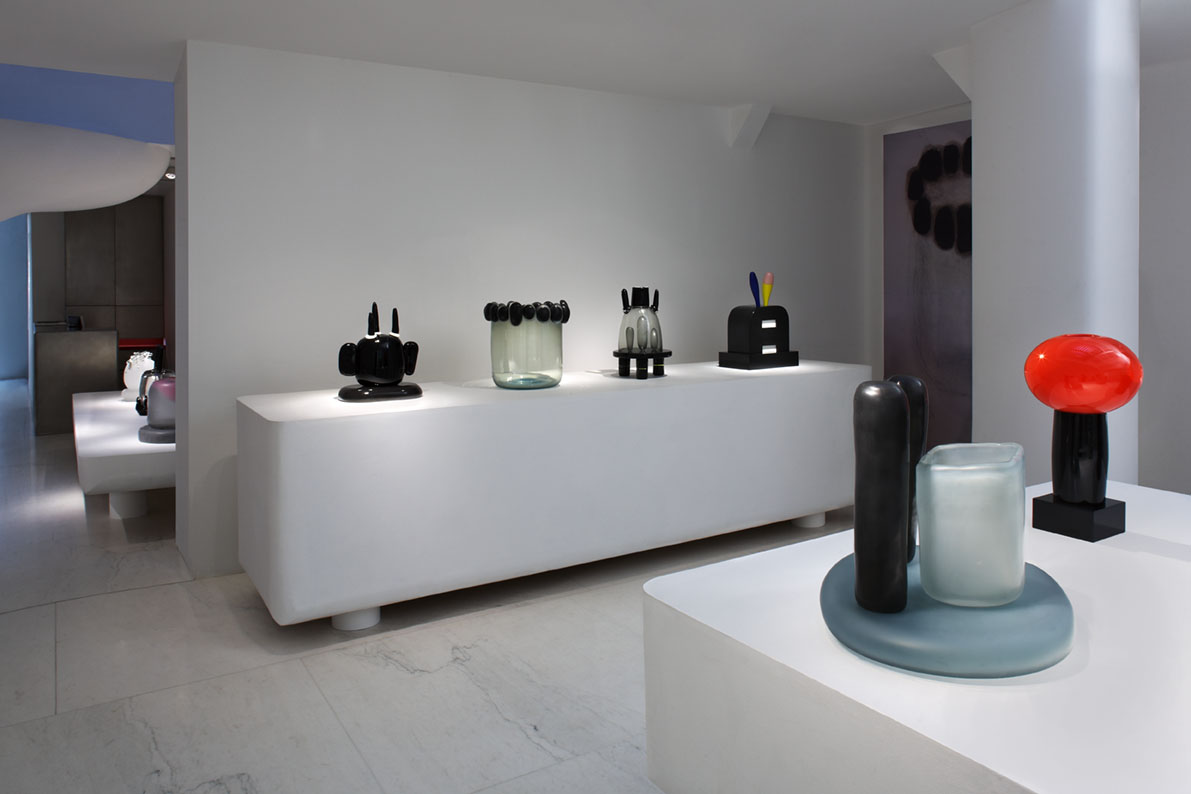 Hautement dĂ©coratifs et Ă©clectiques, ces vases Ă lâĂ©lĂ©gante opulence, dĂ©ploient une symphonie de formes et de couleurs, libĂ©rant le designer de lâenfermement quâune unitĂ© stĂ©rilisatrice pourrait lui confĂ©rer. Pour cette exposition, lâartiste fait en effet Ă©clater variĂ©tĂ© des silhouettes, galbes et teintes, Ă lâimage de lâart radical dont son oeuvre est empreinte.