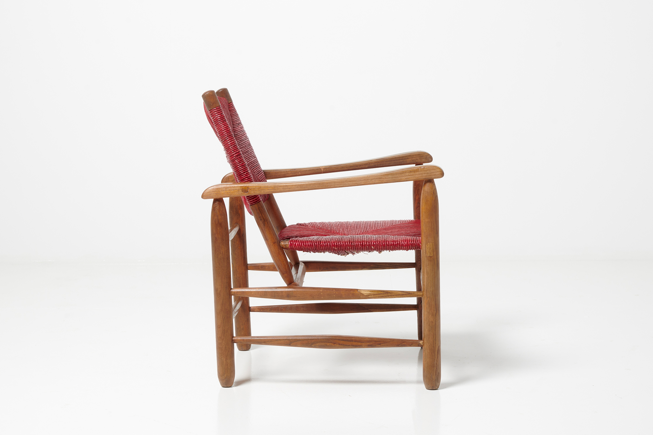 Structure en chêne, assise et dossier paillés re-teinté rouge