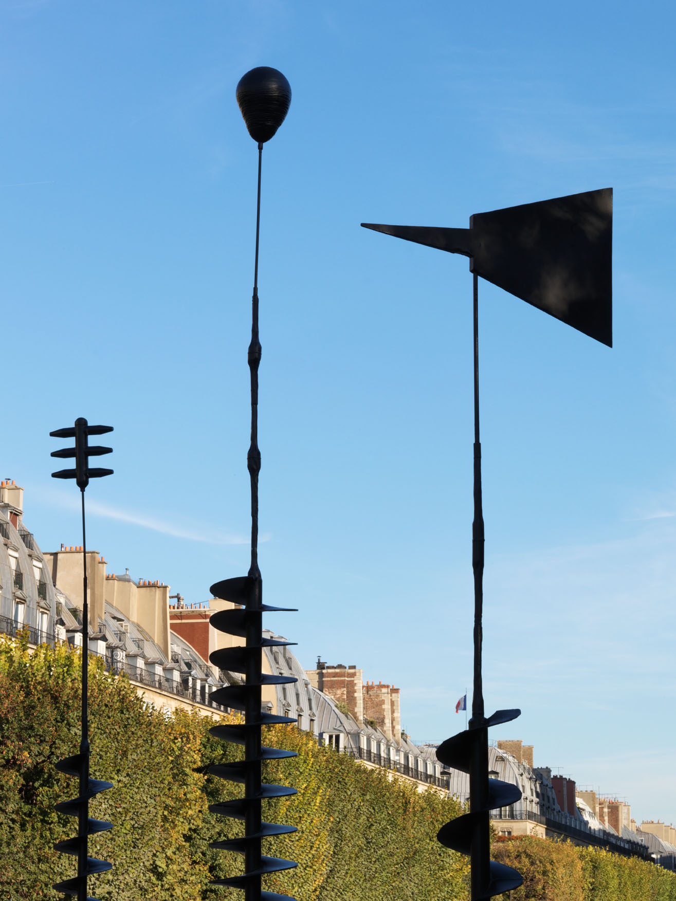 Œuvres de Takis, présentées au Jardin des Tuileries, Paris.